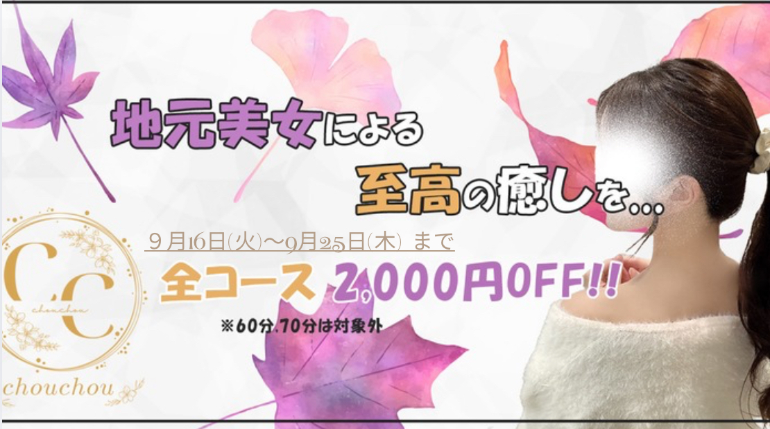 グランドオープン!!新規様もリピーター様も全コース【2,000円】OFF♡*60分コース、70分コミコミは対象外です。